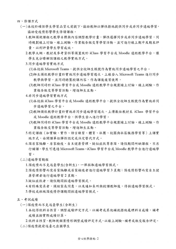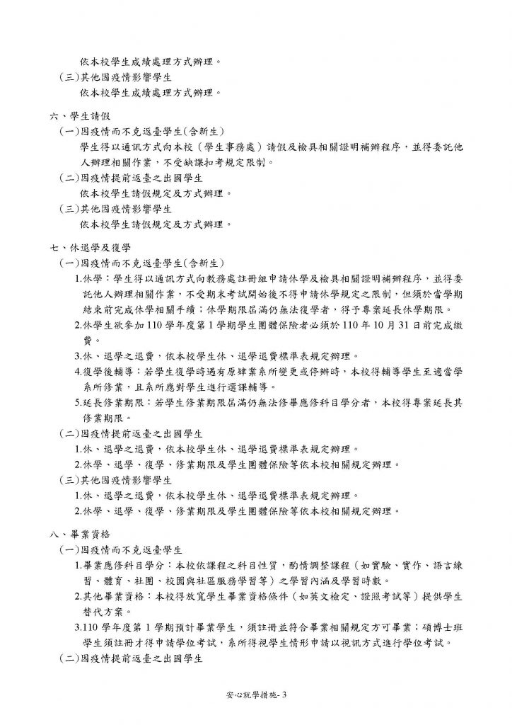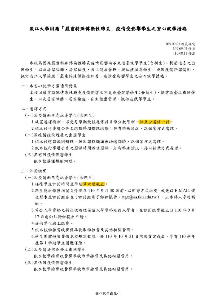 110-1淡江大學因應「嚴重特殊傳染性肺炎」疫情受影響學生之安心就學措施